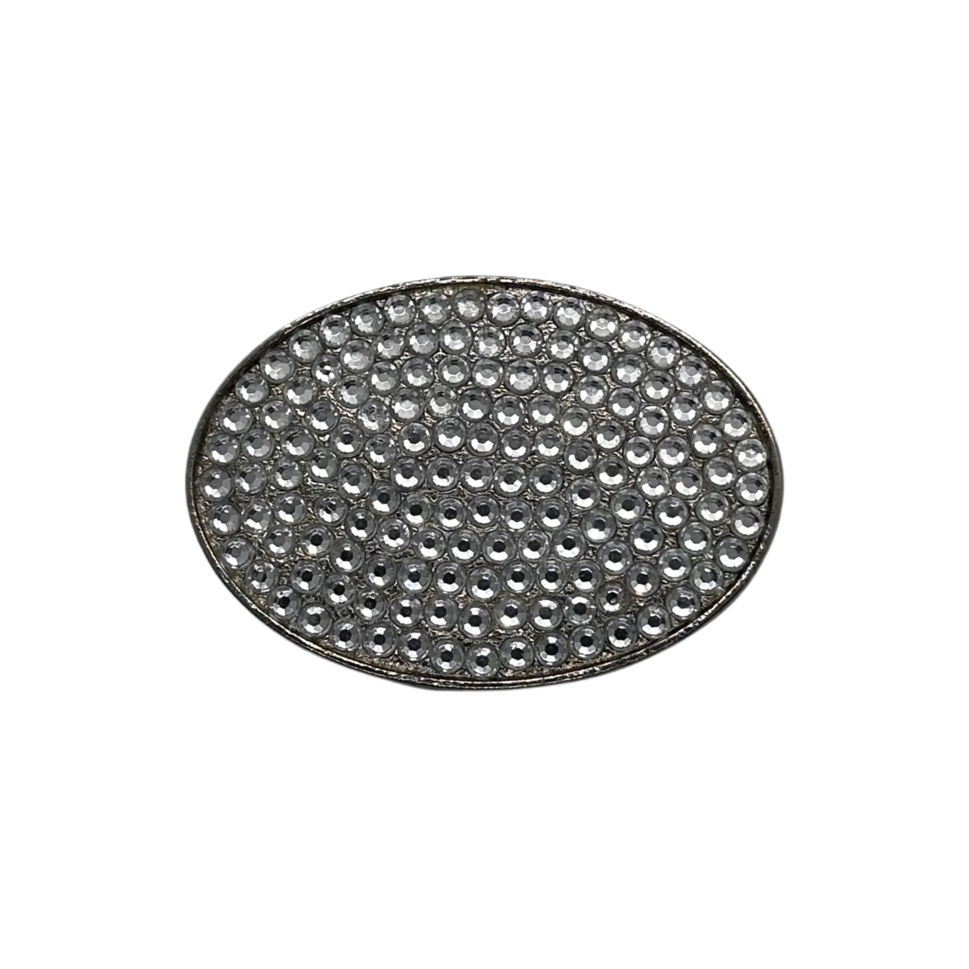 Add a touch of sparkle to your western wardrobe with this vintage rhinestone belt buckle. Featuring a full-oval face design of shimmering faux rhinestones, it truly captures the perfect balance of rodeo charm and timeless glam.